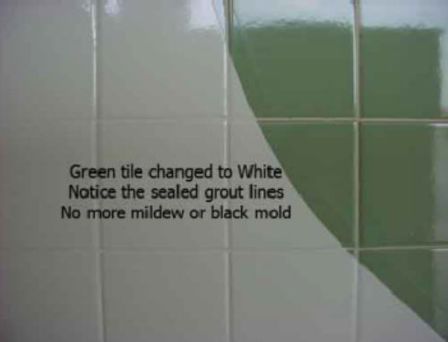 old tile looking new again, with no grout lines to clean!
